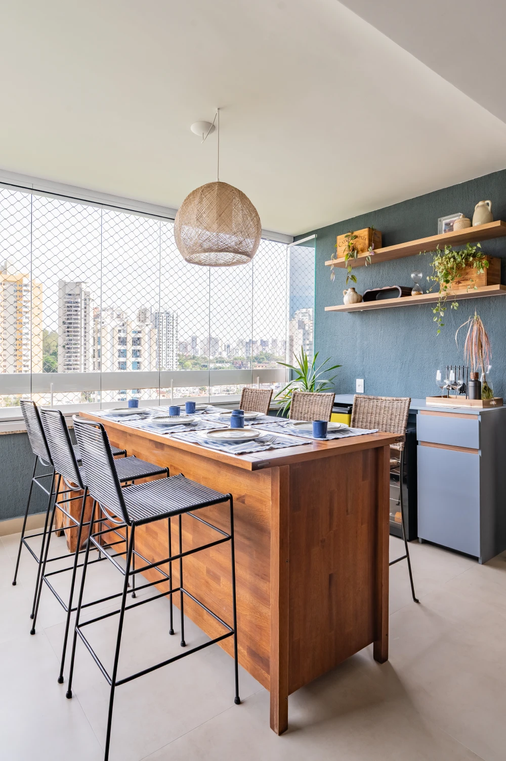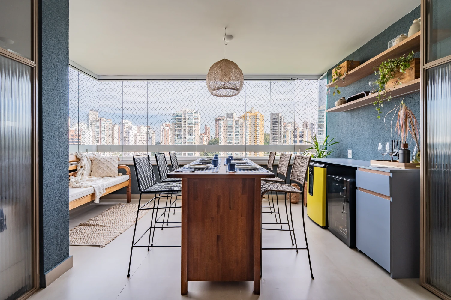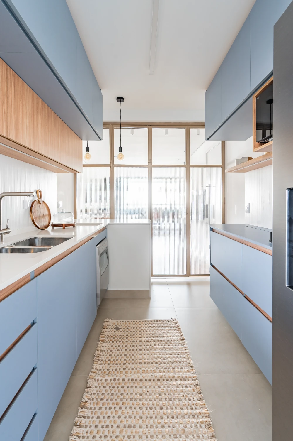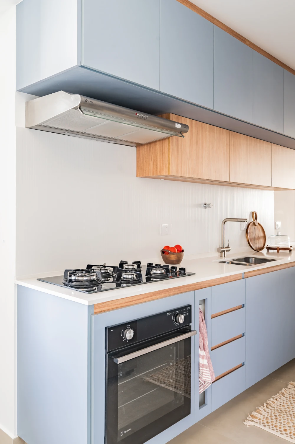 Projeto contemporâneo com toques afetivos, focado em transformar uma cozinha original nunca reformada e deixar a área social mais acolhedora.